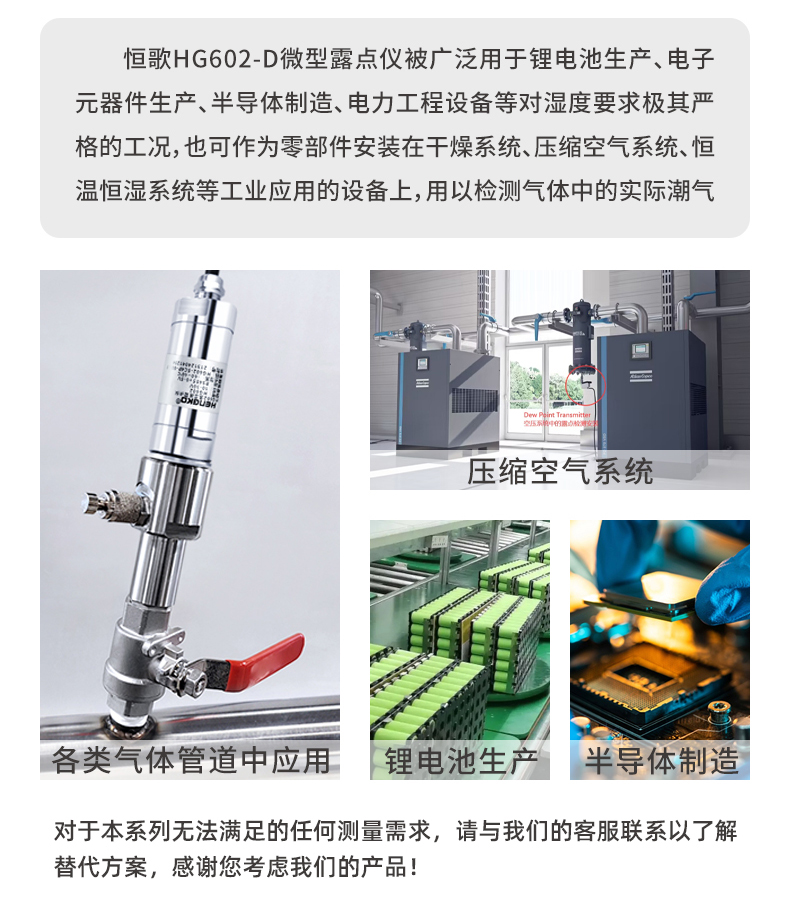 恒歌HG602-D微型露點變送器專為極干燥環(huán)境中的露點測量而設(shè)計,可提供快速、穩(wěn)定和可重復(fù)的測量性能具有一定的抗干擾、耐腐蝕、防坐防污染的性能。同時因體積小巧、集成度高,常安裝于空間有限的多種工業(yè)管道中。這是一款在性能、品質(zhì)、外觀設(shè)計、使用壽命方面與進口高端產(chǎn)品不相上下,部分性能指標(biāo)已超越的極具性價比的露點變送器。